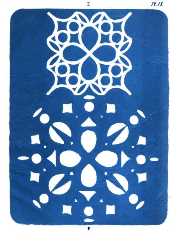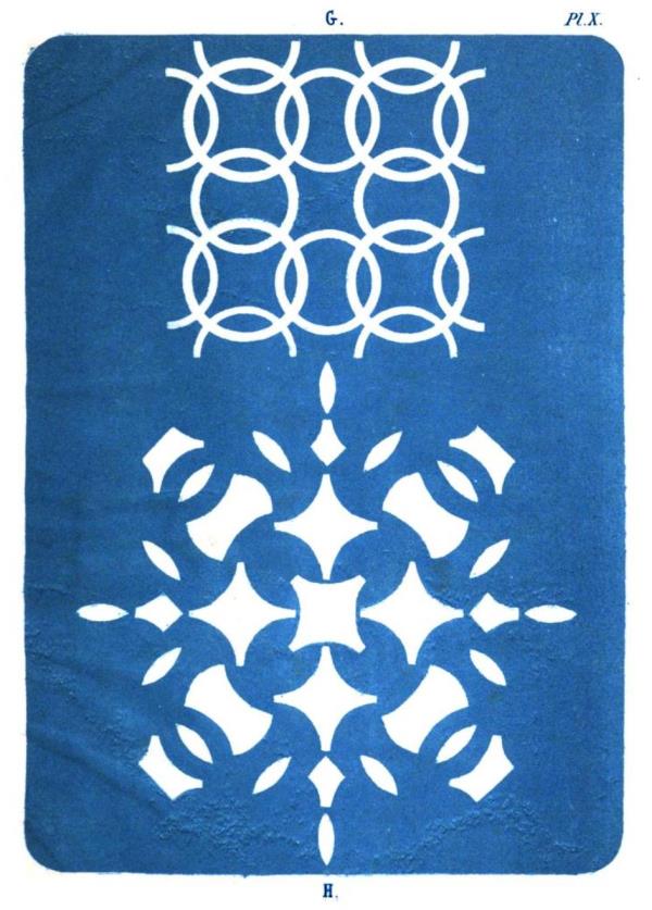 This passage, which follows directly on from the one above, says, roughly, 'The fishing net is created in the same way with the difference that the cuts are rounded ... If we fold a square in four and cut off the corners we get a (rounded) edge ... and finally a beautiful fishing net is cut.' ********** Cutting a Hexagon from a Square Fig 11 of Plate 1 shows how to cut a hexagon from a square.