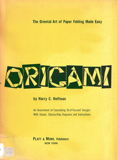 The 'Deluxe Origami Mobile Kit' was published by Platt and Munk in New York, probably in September 1961. It includes the booklet 'Origami: The Oriental Art of Paper Folding' by Harry C Helfman, which was published in late 1960, and a separate booklet titled 'Origami Mobiles', as well as paper and bamboo sticks. I have not seen a full copy of the 'Origami Mobiles' booklet. The inside pages shown below page are taken from the revised hardback edition of 'Origami: The Oriental Art of Paper Folding' which was published in 1965 and combined both booklets from this kit into one volume. I am confident that they are identical to those published in this kit. ********** ***********