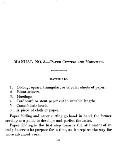 ********** Manual No 3: Third School Year This manual starts with an interesting discussion of the usefulness for education of paperfolding and papercutting.