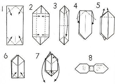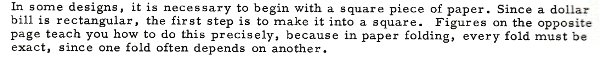 ********** The Picture Frame This is a standard Simple Froebelian Form of Life folded from a bill made into a square. This design had previously appeared in 'Bill Folds' by Al O'Hagan, a 6-page leaflet issued by George Snyder's Magic Shop of Cleveland, Ohio in 1945.
