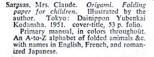 | Origami: Folding Paper for Children by Claude Sarasas, 1951 | |||||||