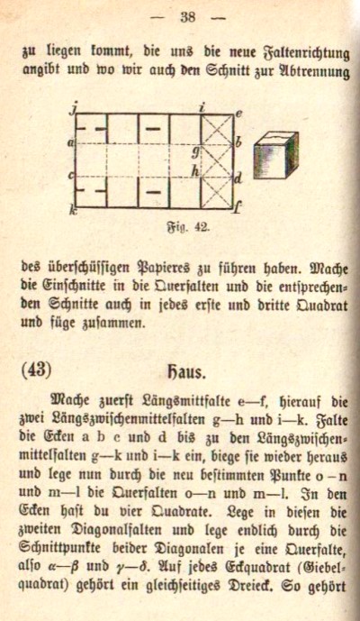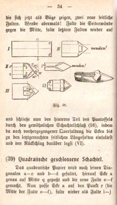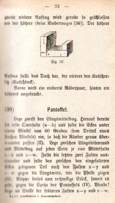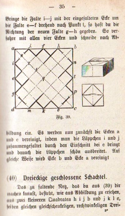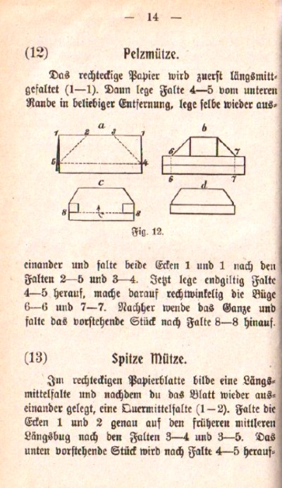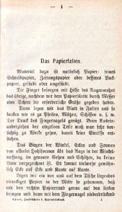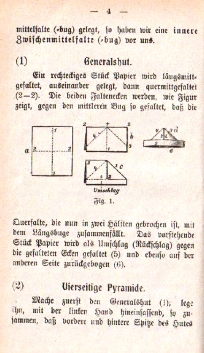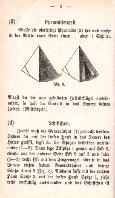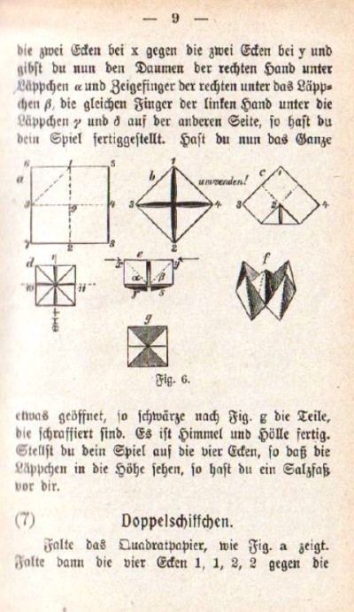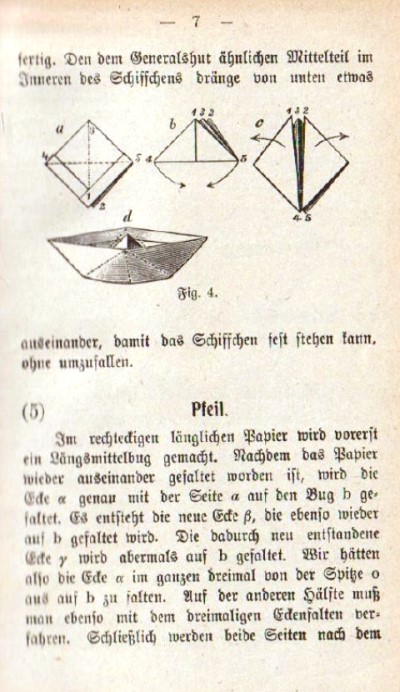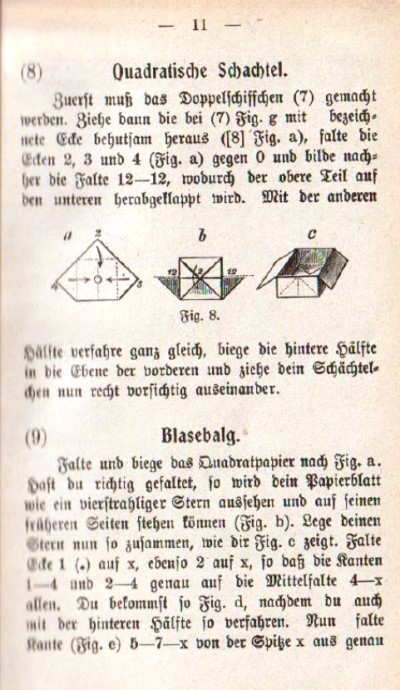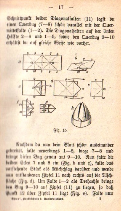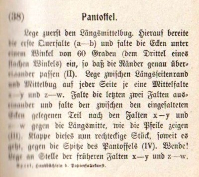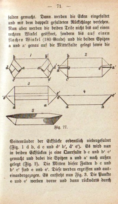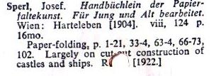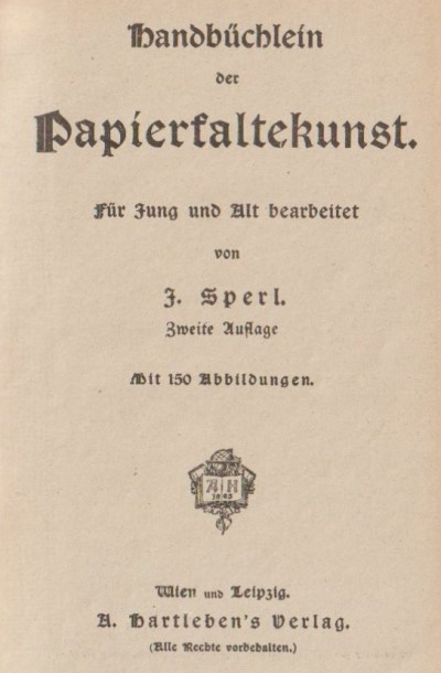 | Handbüchlein der Papierfaltekunst by J Sperl, 1904 | |||||||