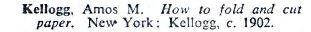 'How to Fold and Cut Paper' by Amos M Kellogg, 1902 ********** This work is mentioned in Gershon Legman's 'Bibliography of Paperfolding' which was published in 1952.