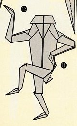 Similar views were also stated in 'Nihon no Kokoro Dento Origami' (from 1969), where he wrote, roughly translated: 'Due to the rapid Westernisation that began in the Meiji period, many Japanese traditions are now in danger, and origami is no exception, in the sense that its legitimacy is being lost. In an effort to be unnecessarily unusual and with too much emphasis on artistic value, origami's original appeal as something familiar, easy for anyone to fold, and easy to put together into simple concise shapes, is being lost.' This belief may well be at the core of the deterioration of his relationship with Yoshizawa (see below). ********** Honda's paperfolding ethics As well as being happy to develop designs from more than one sheet of paper, Honda was also happy to make use of cuts, particularly to add detail to the design to increase verisimilitude, for instance, to turn single legs, ears etc into two, but also on some occasions to free paper from inside a design in order to broaden the proportions of a body. He is also willing, on occasion, to use decoration or pre-decorated paper. At several points in 'The World of Origami' (see entry for 1965 below), Honda discusses the ethics of using cuts. The chapter on 'The Ideal Modern Origami' includes a section on 'The Yeas and Nays about Using Scissors'. in which he says: