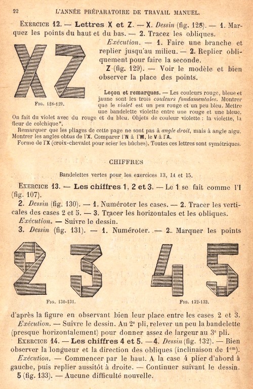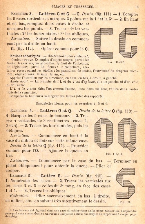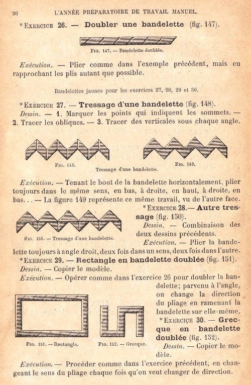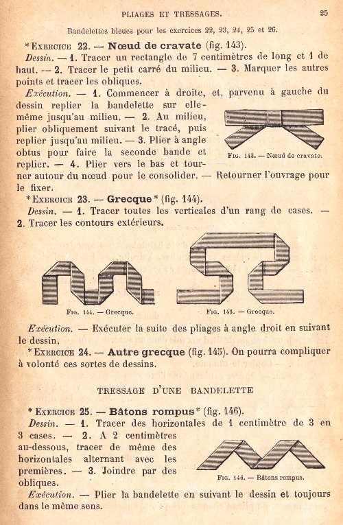 contains sections on Pliages et tressages de bandelettes