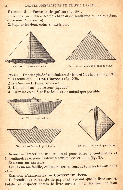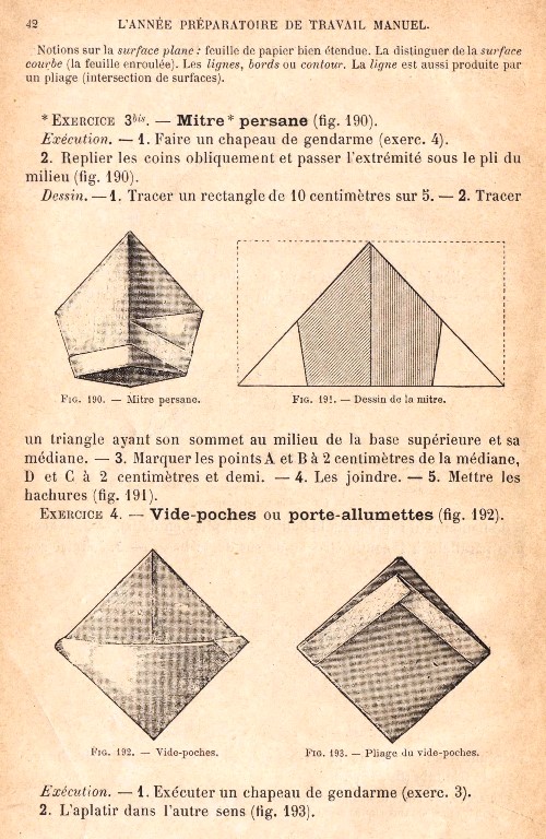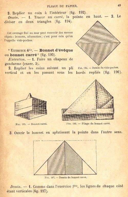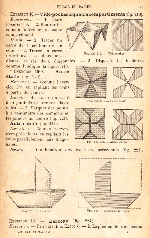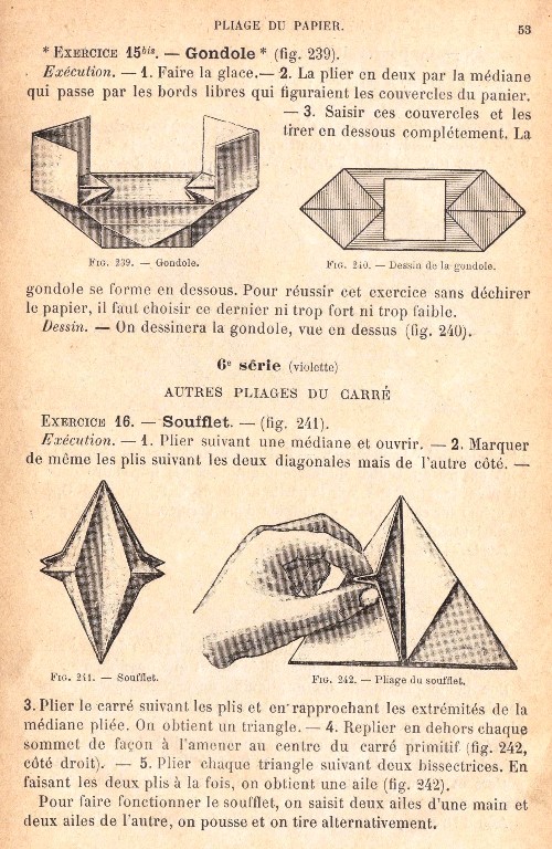 and Pliage du papier. This page is based on an undated copy of the work which can be accessed online here. This copy may not be entirely complete, since it lacks an Introduction, if there was one. I have no reason to believe this is not either a first edition or a later, but identical, printing. **********