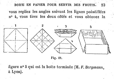 Previously published in 'Boite aux Lettres' of 7th January 1888. ********** Boite en papier pour servir des fruits a la campagne (Paper box for serving country fruits) - The Junk Box