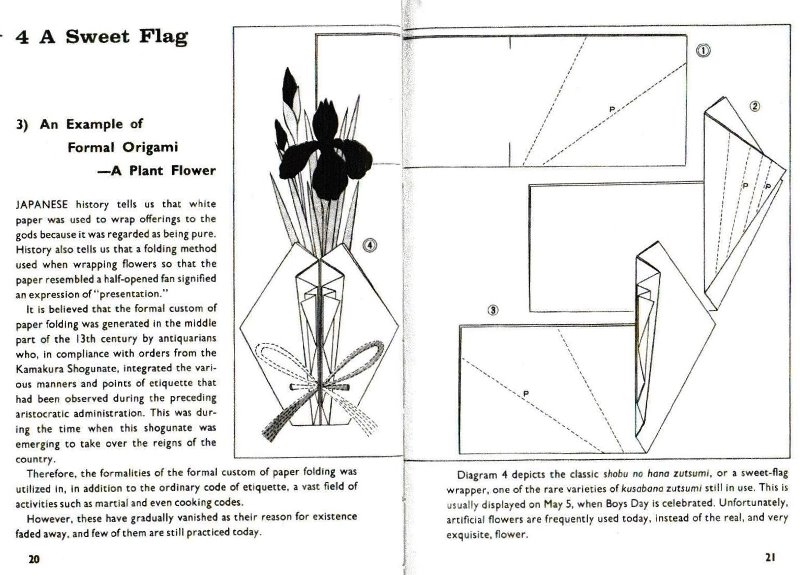 ********** Shobu no hana zutsumi (wrapper for Japanese Sweet Flag) The text states that this is one of the few formal flower wrappers (kusubana zutsumi) still in use, 'usually dispayed on May 5th, when Boy's Day is celebrated'