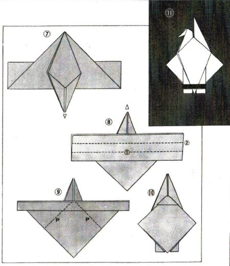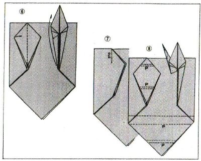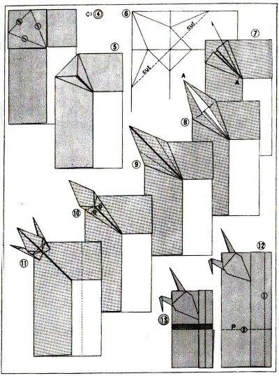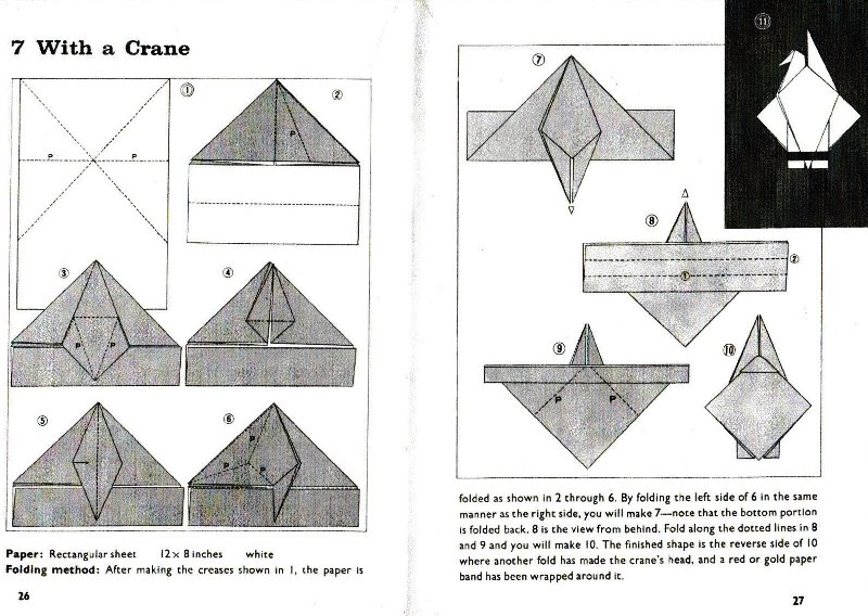 ********** Paper Cash Gift Wrapper with a Crane Folded from a 13 x 9 oblong of white paper. The Crane replaces the noshi as an auspicious symbol.