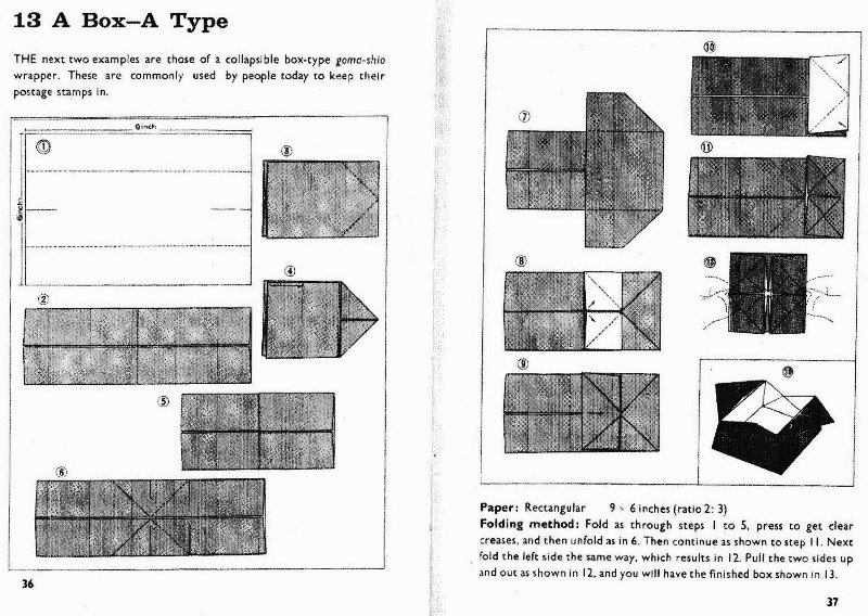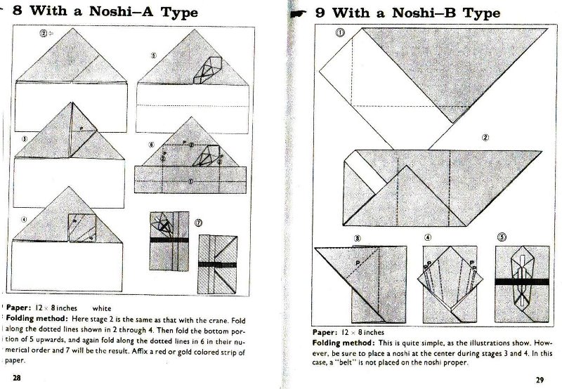 ********** Goma-Shio Wrapper with a Noshi (two different methods) Each folded from a 12 x 8 (3 x 2) oblong of white paper. Method A