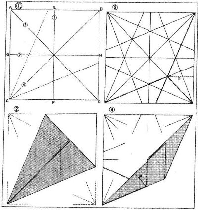 'Noshi - Classic Origami in Japan' by Isao Honda was published by Japan Publications Trading Company in Tokyo and Rutland, Vermont in 1964. Despite the title, only a relatively small proportion of the book is about noshi, the remainder mostly being concerned with various cash gift wrappers and goma-shio containers (some of both of which are decorated with noshi) and one traditional open wrapper for the Japanese Sweet Flag. There is also a page about 'titles' on slips of paper attached to gifts, which appears to have been added as an afterthought, possibly simply to fill up space. The text seems vague and contradictory in places, although this may perhaps be a result of the poor quality of the translation into English. The original work had an actual folded noshi pasted into the front. It is also worth noting that Honda presents no evidence to establish the antiquity of any of the designs he presents in this work and it is not clear whether, despite the subtitle, they are all traditional designs or whether some are his own creations. Honda advances the theory that play origami developed from the folding of less formal modern containers and wrappers, but it should be noted 1, that he provides no historical evidence in support of this theory and 2, the theory is contradicted by the known sequence of events within the Japanese paperfolding tradition. The illustrations in the original work are in red. The bird pictured at middle left on the cover does not appear in the work. A low-res version of the work is included at the foot of this page. **********
