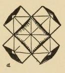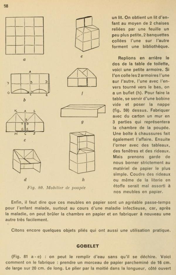 Similarly by adding g in between two ds you can make a bed. A child's bed can be made from two Chairs in a similar way. Two benches can be glued together to form a bookcase. Fold back the dressing table and you have a small wardrobe. If you glue two wardrobes together, with one upside down, you have a sideboard (h)