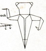 ********** A design for 'El Mono' (the monkey) developed from a bird base appears in the second edition of 'Papiro-Zoo: Manual Practico de Papirologia o Cocotologia' by Giordano Lareo, which was published by Libraria 'El Ateneo' Editorial in Buenos Aires in 1944. This design only has one back leg.