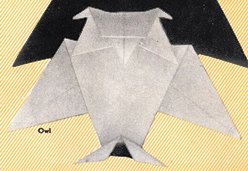 ********** The design also appears: 1958 As 'Owl' in 'Origami: Japanese Paper Folding: Monkey Book' (photograph only), which was published in English by Toto Shuppan Co Ltd in 1958.