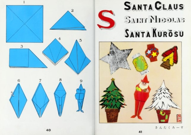 ********** 1951 The Postman appears in the guise of Santa Claus in 'Folding Paper for Children: Origami' by Claude Sarasas, which was published by Kodansha in Tokyo in 1951.
