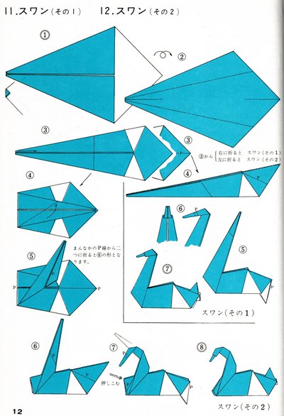 ********** 1961 As 'Swans 1 and 2' in 'Origami Zoo: Bird Book' by Isao Honda was published by Toto Shuppan Co. Ltd in 1961.