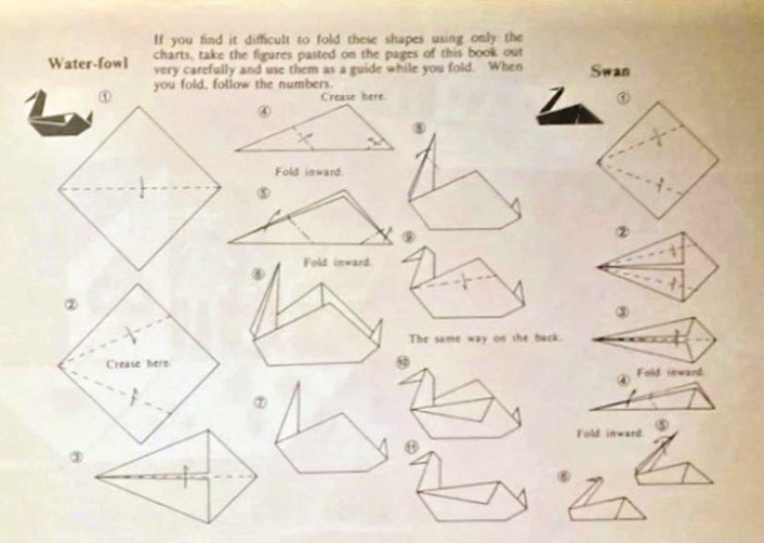********** Analysis Note that some of the folded designs originally attached to the coloured pages are missing from these images. Water-fowl ********** Swan - The Simple Swan