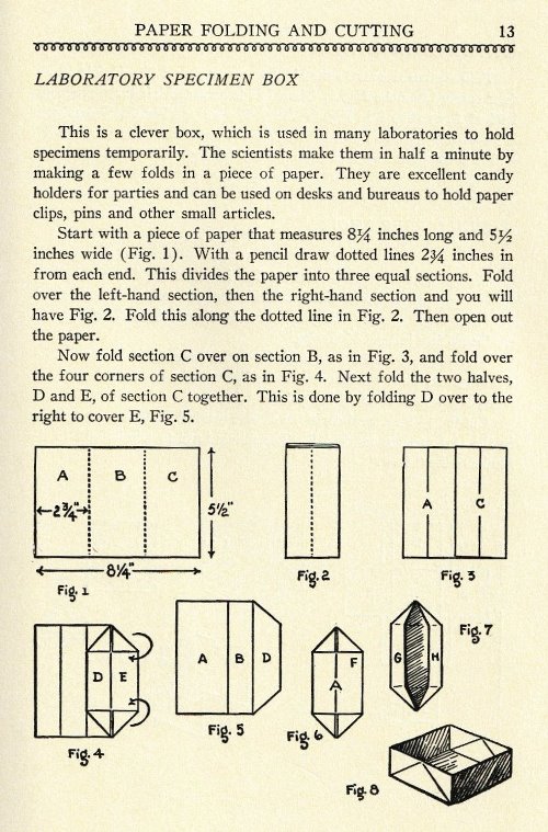 'Papercraft: How to make toys, favors and useful articles' by Joseph Leeming was published by Lipincott in Philadelphia in 1949. It is, as the title suggests, a work of mixed papercraft designs of many types. Those that include some substantive element of paperfolding are shown in the Analysis below. ********** This work is mentioned in Gershon Legman's 'Bibliography of Paperfolding' which was published in 1952.