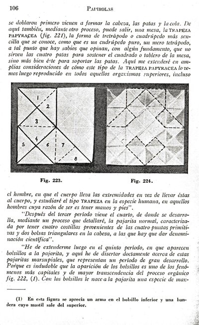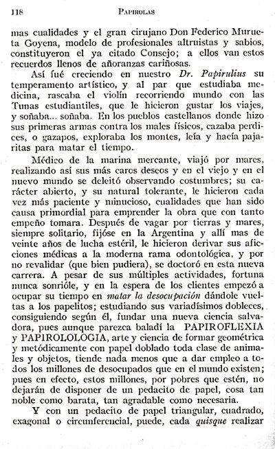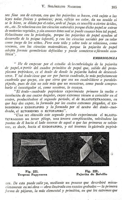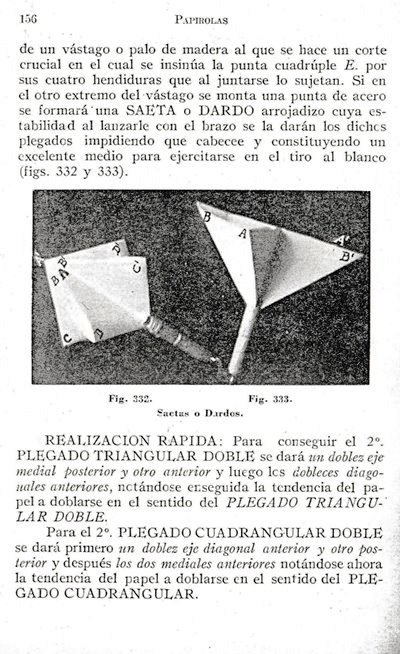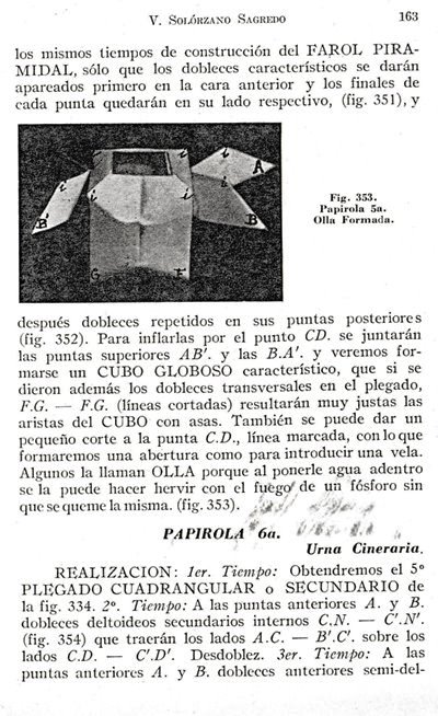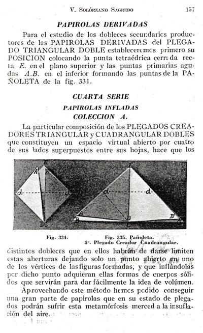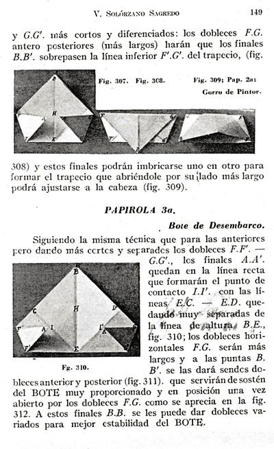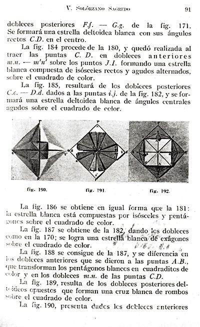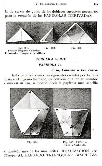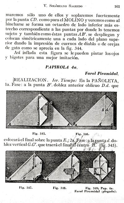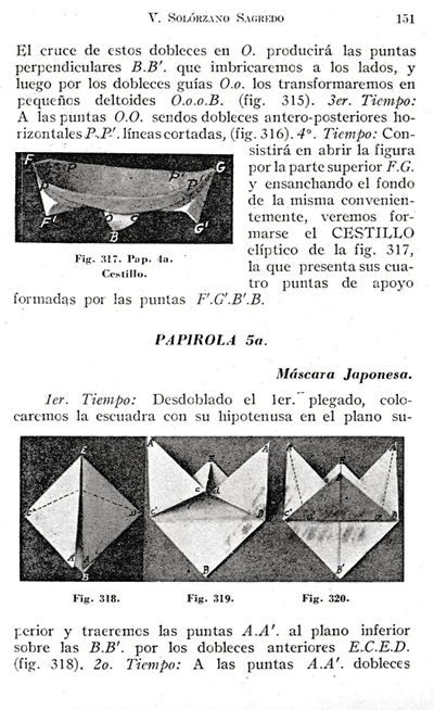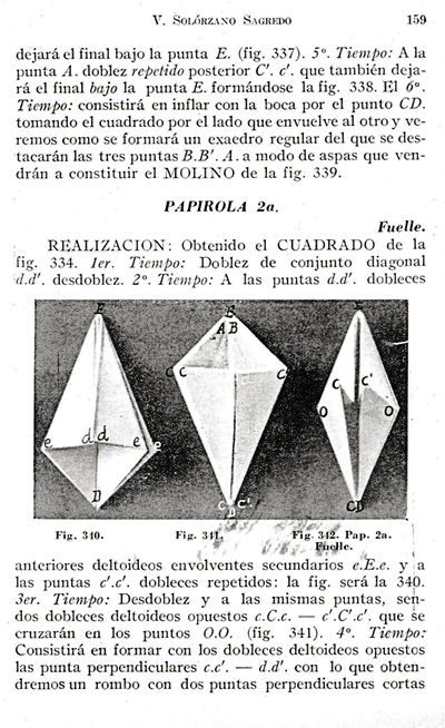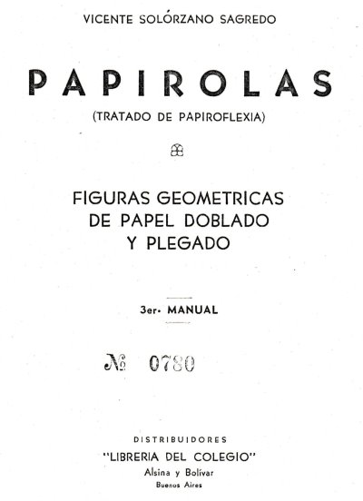 'Papirolas - Volume 3' by Vicente Solorzano Sagredo was self-published in Buenos Aires in 1940. This work is mentioned in Gershon Legman's 'Bibliography of Paperfolding' which was published in 1952.
