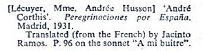 'Peregrinaciones por España' by Andre Corthis (a pseudonym of Andrée Magdeleine Husson) was published by Editions Literarias in Madrid in 1931. It is a translation into Spanish by Jacinto Ramos of the authors 1930 book 'Pèlerinages en Espagne'. It contains a description of a visit to Zaragoza in which the author met Don Miguel Unamuno. This work is mentioned in Gershon Legman's 'Bibliography of Paperfolding' which was published in 1952.