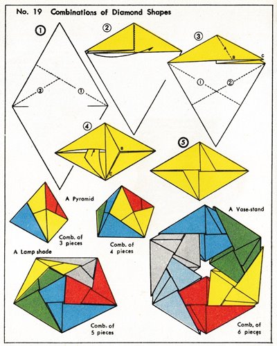 ********** Combinations of Diamond Shapes Made using a module folded from a 60/120 degree rhombus. (Although not attributed here this design is by Akira Yoshizawa.)