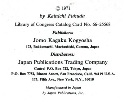 'Sunny Origami: Swan Book' by Keinichi Fukuda was published by Jomo Kagaku Kogyosha in Japan in 1968 and distributed by Japan Publications Trading Company. The 1968 date is given in David Lister's article on Circular Origami which can be accessed here. The work shown on this page has a copyright date of 1971. I believe, however, that the date for the original publication given by David Lister is correct (although I have not seen documentary proof of this). I have no reason to suppose that the contents of the 1971 version and the 1968 original were different. Note that the titular swans, which appear on the cover, are not explained inside the work. The work is one in a series of 10 works by the same author. Details of the other works in the series can be found on the page about the earliest of the works, 'Sunny Origami: Angel Book'. All these books are of a similar format and explain ways of making designs by combining simple pictorial elements, made from folded, and often cut, paper circles of varying sizes, into multipiece collages.These books do not use standard origami diagrams, but, instead, contain a folded exemplar of each design together with a simple explanation of how each of the pieces that make up the design is to be folded / cut. My grateful thanks to the British Origami Society for letting me see a copy of this work. **********