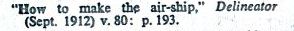 Article containing a cut-out paper plane (airship) in The Delineator for September 1912. ********** This article is mentioned in Gershon Legman's 'Bibliography of Paperfolding' which was published in 1952.