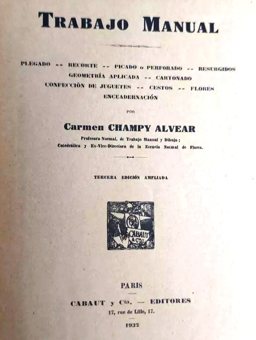 An expanded third edition of 'Trabajo Manual' by Carmen Champy Alvear was published by Cabaut y Cia in Paris in 1932 (and, presumably, also in Buenos Aires at a similar date.) This third edition is mentioned in Gershon Legman's 'Bibliography of Paperfolding':