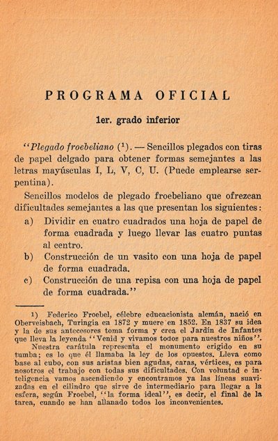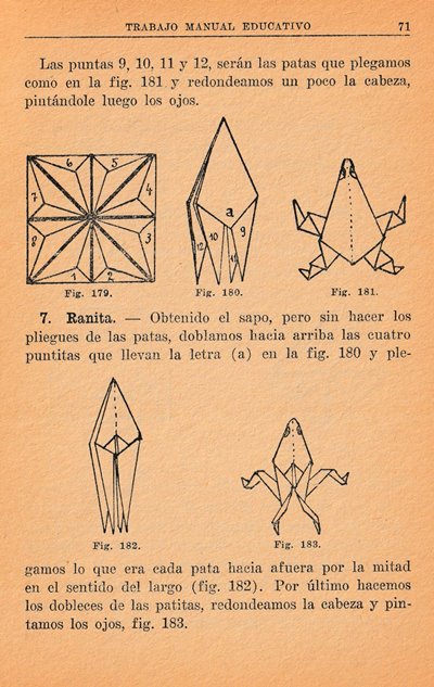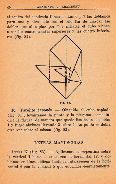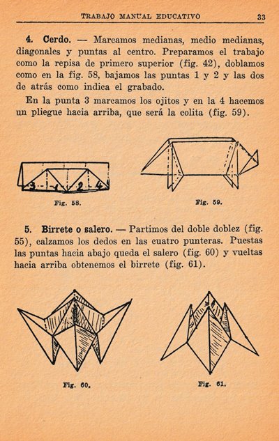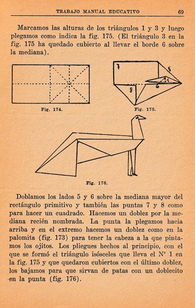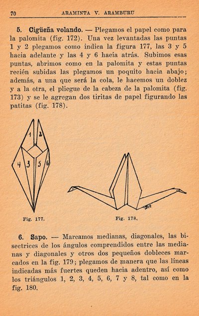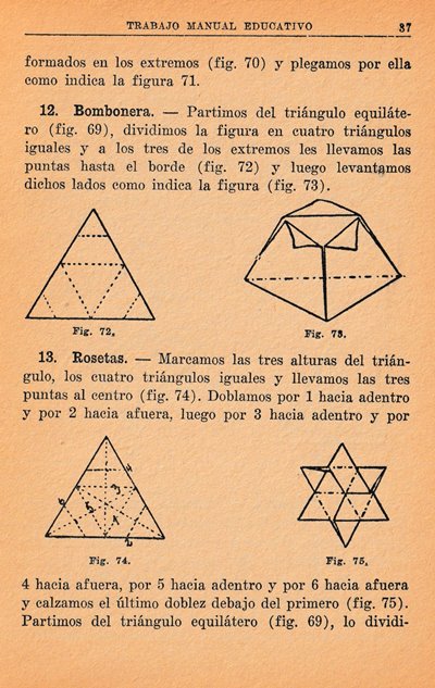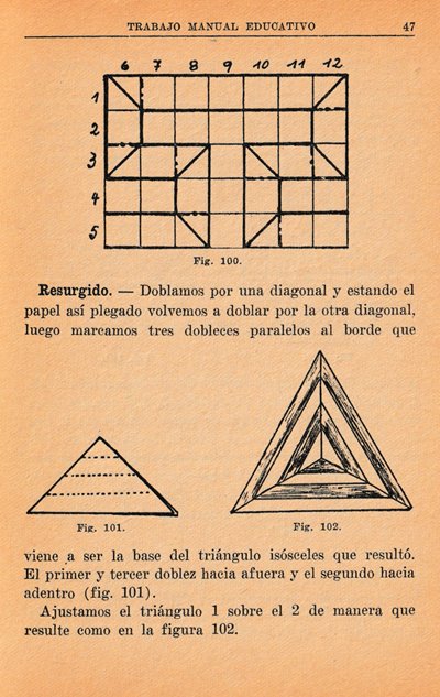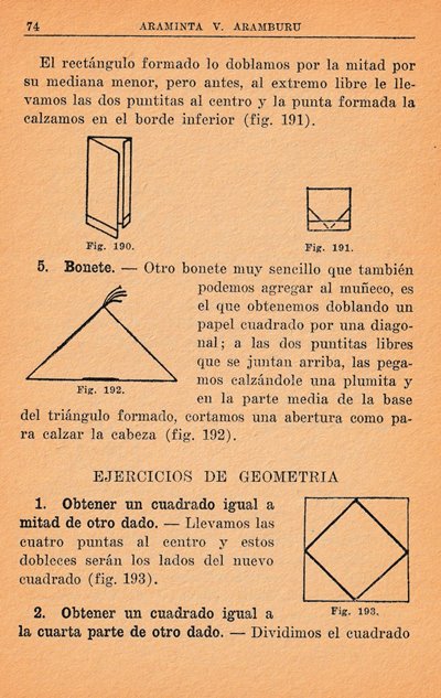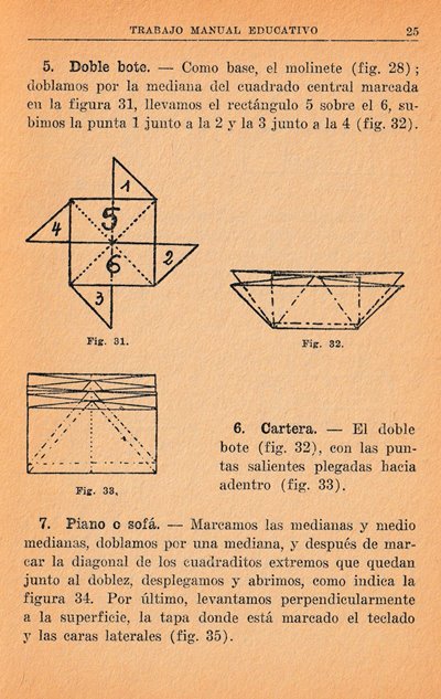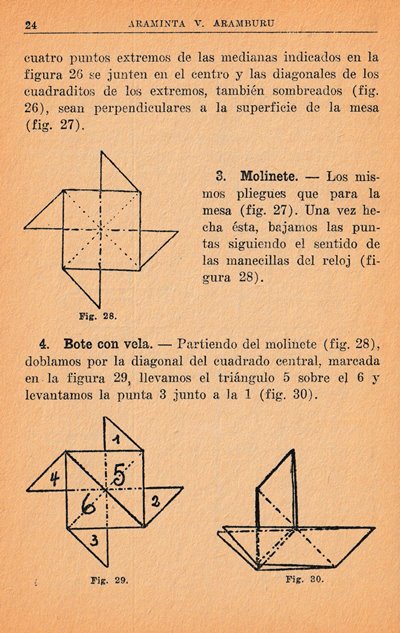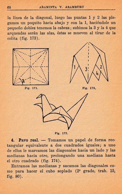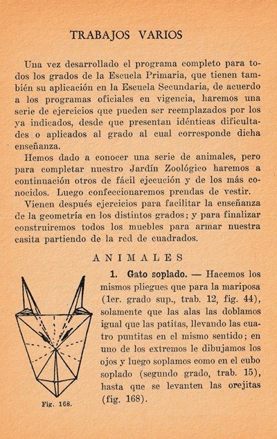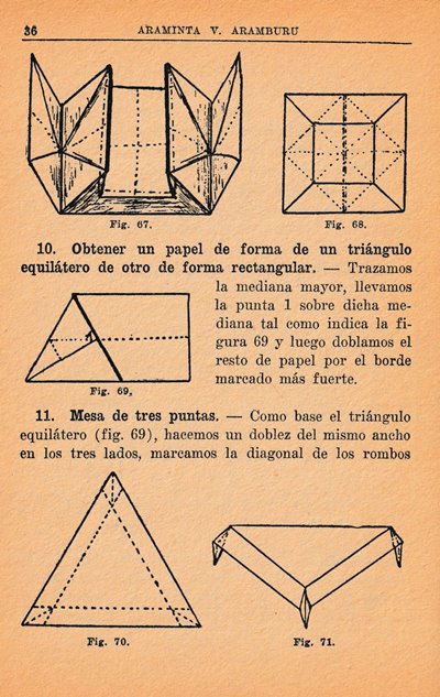 'Trabajo Manual Educativo' by Araminta V Aramburu was published by F Crespillo in Buenos Aires. The work is undated. However, a publication date of 1939 is given in the bibliography in 'Papirolas - Volume 3' by Vicente Solorzano Sagredo, which was published in Buenos Aires in 1940. This page is based on a copy of the work gifted to Robert Harbin by Ligia Montoya and currently held in the library of the British Origami Society, who have kindly allowed me access to it. ********** The work is mentioned in Gershon Legman's 'Bibliography of Paperfolding':