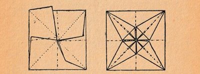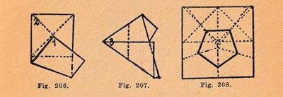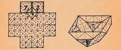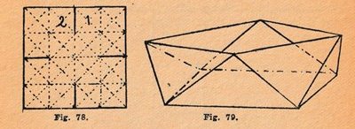 ********** The work gives suggestions for educational manual work based (mainly) around paperfolding, ie paperfolding per se, paper sloyd and cardboard modelling. The syllabus is split into the various school years from primary to sixth grade (though I have not kept to this scheme in the Analysis). There is also a chapter containing suggestions for similar work at secondary school (which includes a few simple woodworking designs). The Analysis does not include all the geometric exercises, cardboard modelling or paper sloyd style designs in the work. A full low-res copy of the work is included at the foot of the page. **********