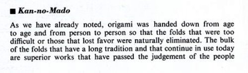 ********** 1960 The Kan no mado is mentioned in 'All About Origami' by Isao Honda, which was published by Toto Bunka Company, Limited in Tokyo in 1960.