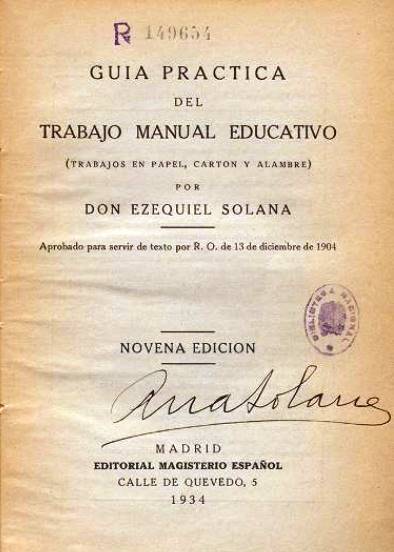 | Guia Practica del Trabajo Manual Educativo by Ezequiel Solana, 9th Edition, 1934 | |||||||
