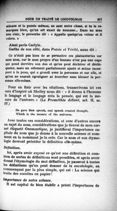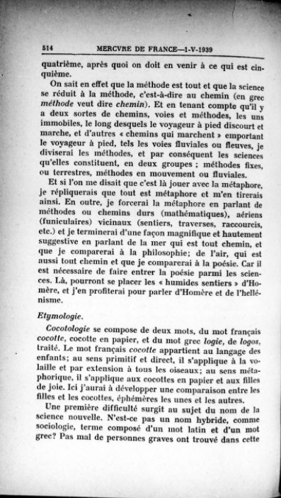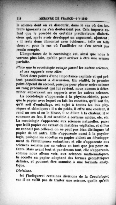Notes Pour un Traite de Cocotologie in Mercure de France, 1939 | |||||||