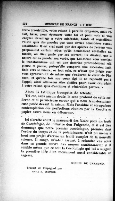 French by Emma H Clouard of Unamuno's 'Apuntes para un