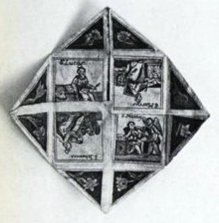 This page is being used to collect information about the history of folded Godparent Letters, which go under various names such as Patenbriefs, Göttelbriefs, Taufbriefs etc. Please contact me if you know any of this information is incorrect or if you have any other important information that should be added. Thank you. In articles on paperfolding history folded Patenbriefs are sometimes referred to as baptismal certificates. Godparent letter is probably a better translation. ********** Introduction Three types of folded Patenbrief are known: 1, Those printed on oblong paper and folded into a rectangular packet (evidenced from 1698 though possibly earlier) 2, Those printed on square paper and folded into a double blintz form (evidenced from 1757 though possibly earlier). 3, Those printed on square paper and folded into the form of a puzzle purse (evidenced from 1770 though possibly earlier). *** According to the Pennsylvania German Blog of May 2016 , 'The Taufbrief or baptismal letter, also known as a Taufwunsch or baptismal wish, Taufzedel, Taufzettel, Taufzeddul or baptismal note, and Göttelbrief or godmother letter ... bears witness to the relationship and responsibilities between godparents and the consecrated infant. This was to be a lasting memory to the child of its dedication to God on that day, and the desire of its sponsor(s) that it might continue to thrive in its relationship with its Creator as it grew to adulthood. It always contains the names of the sponsors, and often the childs first name, and the date of baptism. It may or may not contain the church affiliation and place, childs last name, and date of birth. It almost never contains the parents names.' and 'publishers offered and marketed (Patenbriefs) through local bookstores, as well as itinerant book sellers who canvassed the countryside with their wares. Some of the better known were Reinholden Printers in Leipzig; J. Balzer and E. W. Buchheister in Breslau; J. H. Hierthes in Weissenburg; Johann Andreas Endter in Nürnberg; F. J. Oberthür in Straßburg; and Gottfried Hoffmann in Waldenburg, who printed baptismal greetings from 1756 on, and whose heirs continued to do so into the beginning of the nineteenth century.' *** According to a blogpost from the Hennebergisches Museum Kloster Veßra, roughly translated, 'The sponsorship letter not only included the godparent's wish of happiness and blessing, it was often also a birth certificate and baptismal certificate ... In addition, the folding letter formed the wrapping for the sponsorship money (Göttelgeld or Patengeld), which was handed over as a lucky penny for the baptized and could not be spent ... The custom around the godfather letter is rich. In popular belief, the letter provided a special protective force for the child. Occasionally, the letter also contained breadcrumbs and salt, seeds or, for girls, a threaded sewing needle as symbolic gifts and happy omens for the further life of the child ... Due to their great memory value, sponsorship letters, often placed in a Bible or hymnbook, were well preserved.' *** The entry for 'Patten-Zettul' in 'Nutzbares, galantes und curiöses Frauenzimmer-Lexicon' tells us that in 1715 'The godparents ... usually wind something around to make them secure.' The rectangular packet form and the puzzle purse form are already secure packages so I presume that this remark applies to patenbriefs folded into a double blintz form. *** According to 'Piety and Protocol in Folk Art: Pennsylvania German Fraktur Birth and Baptismal Certificates ' by Frederick S Weiser, 'The earliest known patenbrief comes from comes from a Catholic ceremony at Saverne (Zabern) in Alsace and is dated 1593. The next earliest is dated 1686, from Rostock, northern Germany, and is Protestant.' *** An article about a Taufenpatenbrief or Godparents letter from 1781 gives two, presumably, useful references, although I have not been able to find either online at present. Adolf Spamer, 'Das kleine Andachtsbild', vom XIV. bis zum XX. Jahrhundert. Mit 314 Abbildungen auf 218 Tafeln und 53 Abbildungen im Text (Munchen, F. Bruckmann, 1930). RECAP Oversize N7640.S78q p. 242. Michael Twymans chapter on Baptismal Papers in: Maurice Rickards (1919-1998), 'The Encyclopedia of Ephemera' edited and completed by Michael Twyman (GARF Oversize NC1280 .R52 2000q) ********** Chronology 1593 This is the patenbrief from Saverne in Alsace dated 1593, said to be the oldest in existence. To judge purely from the photograph, it does not appear to have been folded in any way.