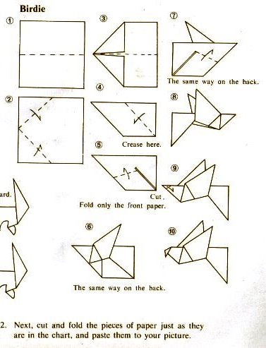 ********** 1931 Instructions for making several kinds of paper bird also appear in 'Origami (Part 1)' by Isao Honda, which was first published in Japan in 1931: Peacock