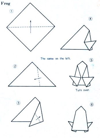 ********** 1967 A very simple design for a 'Frog' app[ars in 'Origami Land: Bossy Book' by Tatsuo Miyawaki, which was published by Biken-Sha in Matsuyama, Japan in 1967.