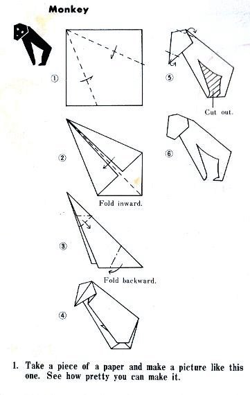 ********** 1960 A compound design for a 'A Monkey' appears in 'All About Origami' by Isao Honda, which was published by Toto Bunka Company, Limited in Tokyo in 1960.