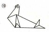 ********** 1970 As 'Seal' in 'Origami Nippon' by Isao Honda, which is a paperback book published by Honda Origami Studio in Tokyo in 1970. In this version a cut is used to separate the back legs.
