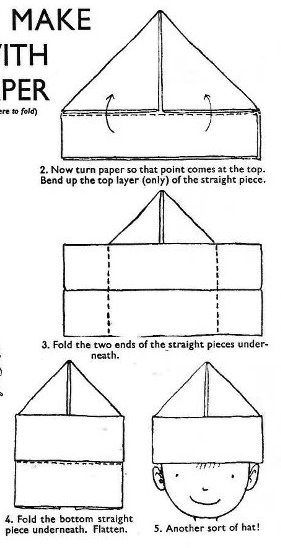 ********** 1965 As 'Paper Hat' in 'The World of Origami' by Isao Honda, which was published in the USA by Japan Publications Trading Company in 1965.