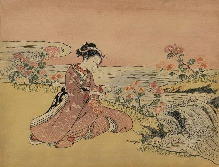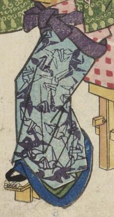 ********** 1810-1820 Print by Katsushika Hokusai showing a woman wearing a kimono decorated with Paper Cranes. ********** 1821 - 1825 This print by Utagawa Toyoshige (1769 - 1825) showing a woman holding a Paper Crane can be dated to 1821/25.