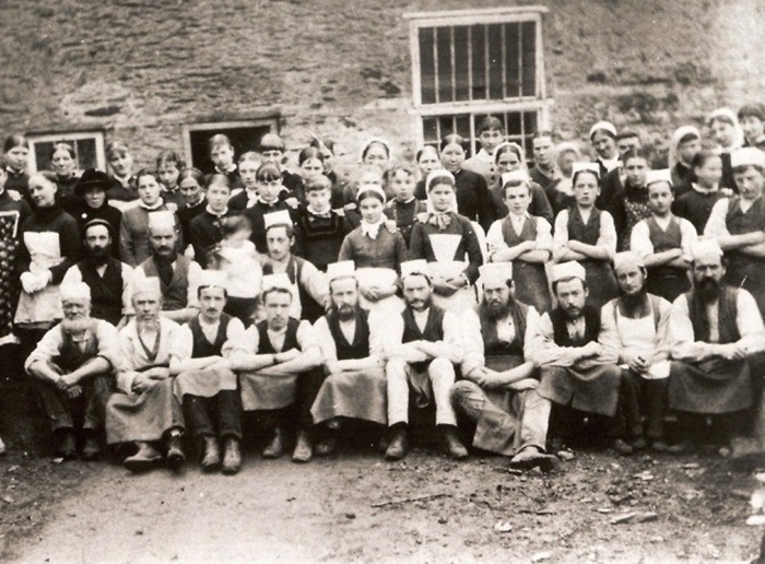The history and significance of the painting is discussed in James M. Dennis 'The Strike: The Improbable Story of an Iconic 1886 Painting of Labor Protest', University of Wisconsin Press, 2011. In her review of the book Melissa Dabakis writes inter alia 'Displayed in New York at the National Academy of Design in April 1886, the painting took on a broader significance when viewed within the context of contemporary labor concerns. A reproduction of the work appeared as a two-page engraving in the May 1, 1886, issue of Harpers Weekly, referencing the demonstrations taking place across the country in support of the eight-hour work day. The engraving reached the homes of middle-class readers with the news of the notorious Haymarket bombing that had taken place on May 4. At this historical juncture, the painting and engraving produced a record of class tensions rarely addressed in American visual culture.' (www.caareviews.org/reviews/1787#.XlEldG52uUk) ********** 1890 This photo, taken in 1890, shows papermill workers at Rivelin, three of whom are wearing Workmen's Hats. Information from Mike Malley. ********** 1891 An article titled 'How to Boil Water in a Paper Bag' published in 'The Boy's Own Paper' of 24th January 1891 states that the author has previously succeeding in boiling water 'In a bag made of cartridge paper or writing paper ... but up to an evening or so ago we had always folded the paper like a printer's or carpenter's cap'. ********** 1893 There is a reference to an apprentice typographer wearing a paper cap in 'Longues et Briefs' by François Coppée, published in 1893. (Information from Juan Gimeno.) In the original French: 'Si quelqu'un lui avait dit alors que cette satisfaction instinctive lui était commune avec l'apprenti typographe en bonnet de papier qui faisait une glissade sur le ruisseau gelé d'en face, M. Godefroy eût été profondément choqué.' In English: 'If someone had told him that this instinctive satisfaction was common to both him and the apprentice typographer in a paper cap, who was sliding on the frozen stream opposite, Mr. Godefroy would have been deeply shocked.' ********** 1896 A Workman's Hat is featured on a trade card for Donaldson Brothers 'Magic Yeast' from 1896.