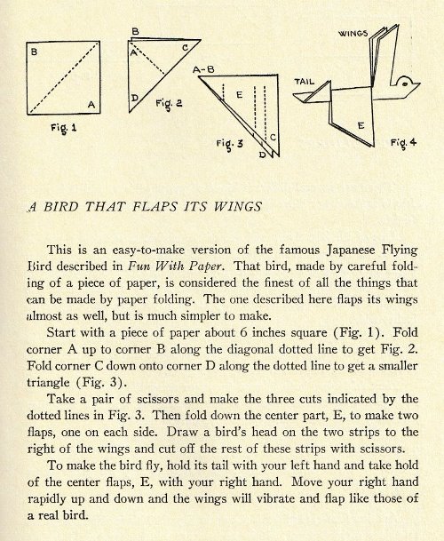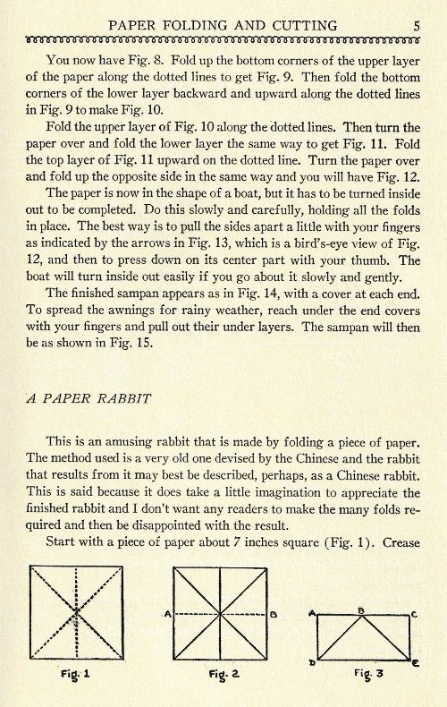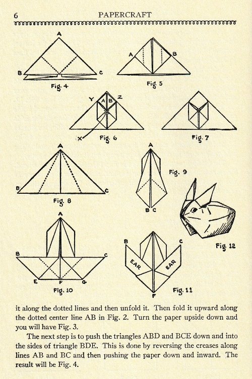 'Papercraft: How to make toys, favors and useful articles' by Joseph Leeming was published by Lipincott in Philadelphia in 1949. It is, as the title suggests, a work of mixed papercraft designs of many types. Those that include some substantive element of paperfolding are shown in the Analysis below. ********** This work is mentioned in Gershon Legman's 'Bibliography of Paperfolding' which was published in 1952.