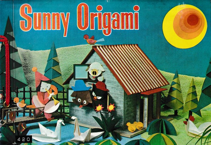 'Sunny Origami: Swan Book' by Keinichi Fukuda was published by Jomo Kagaku Kogyosha in Japan in 1968 and distributed by Japan Publications Trading Company. The 1968 date is given in David Lister's article on Circular Origami which can be accessed here. The work shown on this page has a copyright date of 1971. I believe, however, that the date for the original publication given by David Lister is correct (although I have not seen documentary proof of this). I have no reason to suppose that the contents of the 1971 version and the 1968 original were different. Note that the titular swans, which appear on the cover, are not explained inside the work. The work is one in a series of 10 works by the same author. Details of the other works in the series can be found on the page about the earliest of the works, 'Sunny Origami: Angel Book'. All these books are of a similar format and explain ways of making designs by combining simple pictorial elements, made from folded, and often cut, paper circles of varying sizes, into multipiece collages.These books do not use standard origami diagrams, but, instead, contain a folded exemplar of each design together with a simple explanation of how each of the pieces that make up the design is to be folded / cut. My grateful thanks to the British Origami Society for letting me see a copy of this work. **********